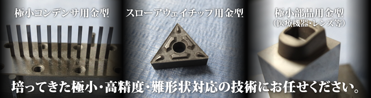 このようなご要望がございましたら、是非一度桂精密にご相談ください! 極小コンデンサ用金型の製造で蓄積された設備・知識および匠の技で、ご要望にお応えできるかもしれません。 |
